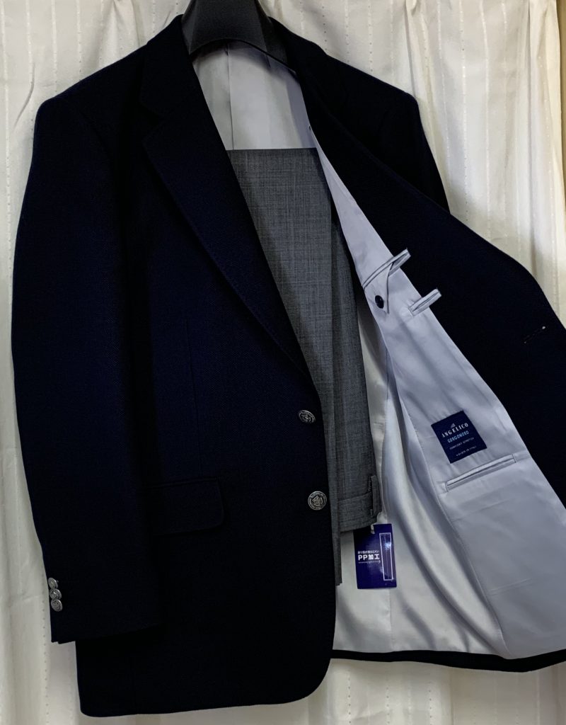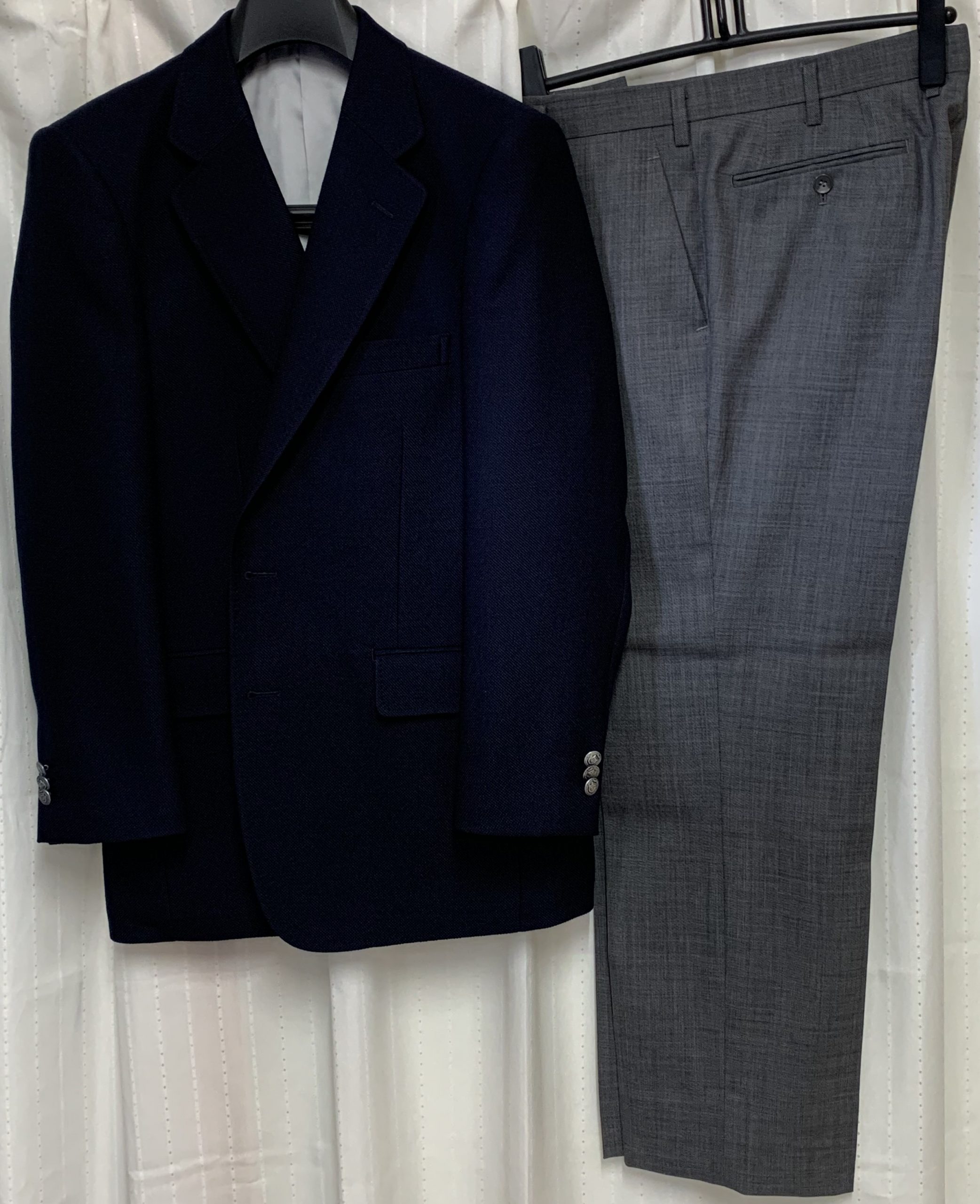 これまでもスーツ・ジャケット・パンツ・シャツと御用のE様の今回の新たなご注文です。イタリア・アンジェリコのジャケット用生地ネイビーカラーのジャケットと合わせてグレーのパンツ、シャツも合わせました。いい感じの仕上がりにご満足いただきました。