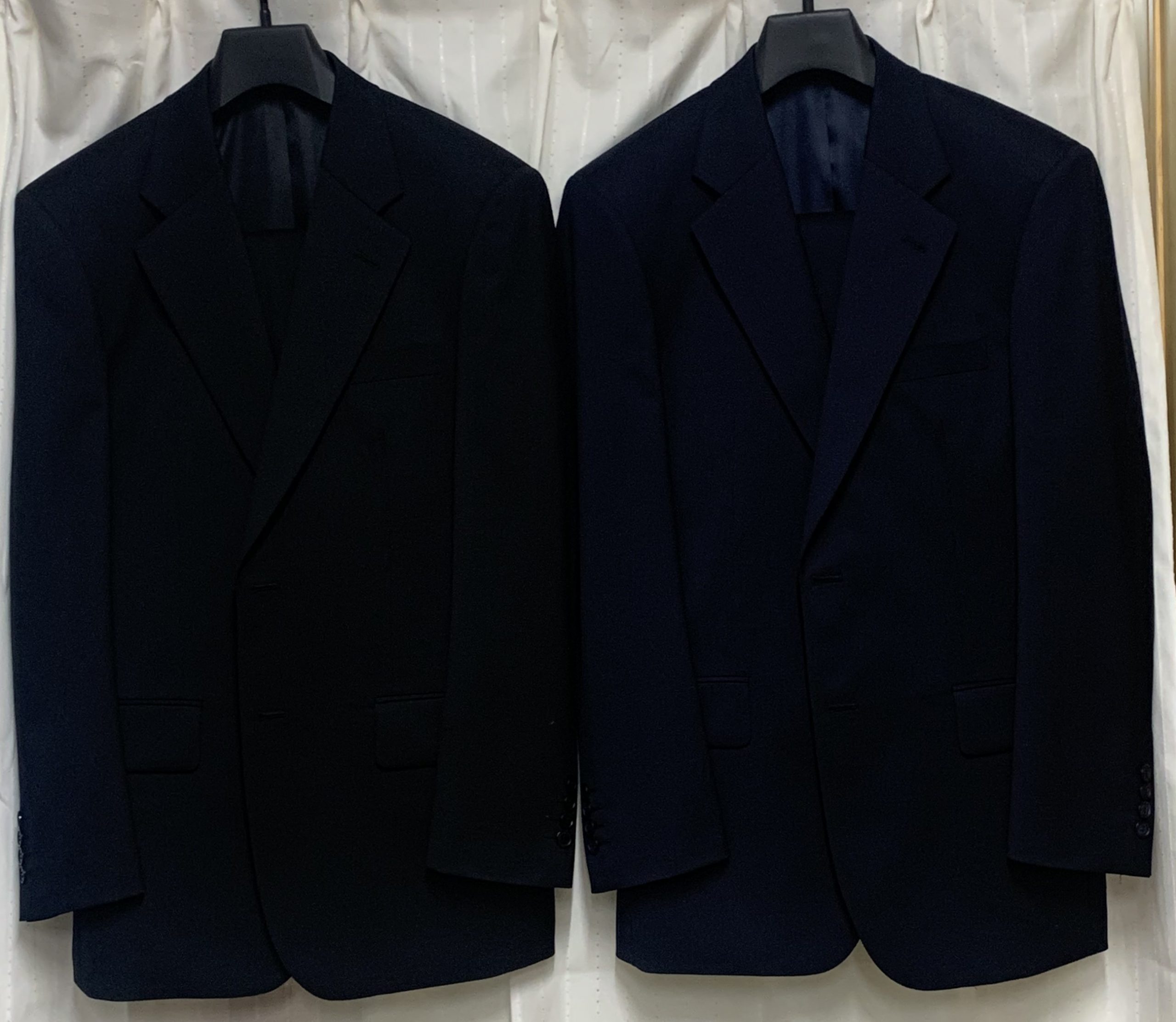 毎シーズンご利用の○○議員様は8,9着目の納品です。スーツはワーキングウェアという仕事柄故に今回はいろいろと着まわせるオールシーズン生地の黒と濃紺を2パンツにいたしました。定番のオールシーズン生地ソリッド+は丈夫でストレッチ機能もありカラーも5色。上下のいずれかが損傷しても生地の提供は安心です。