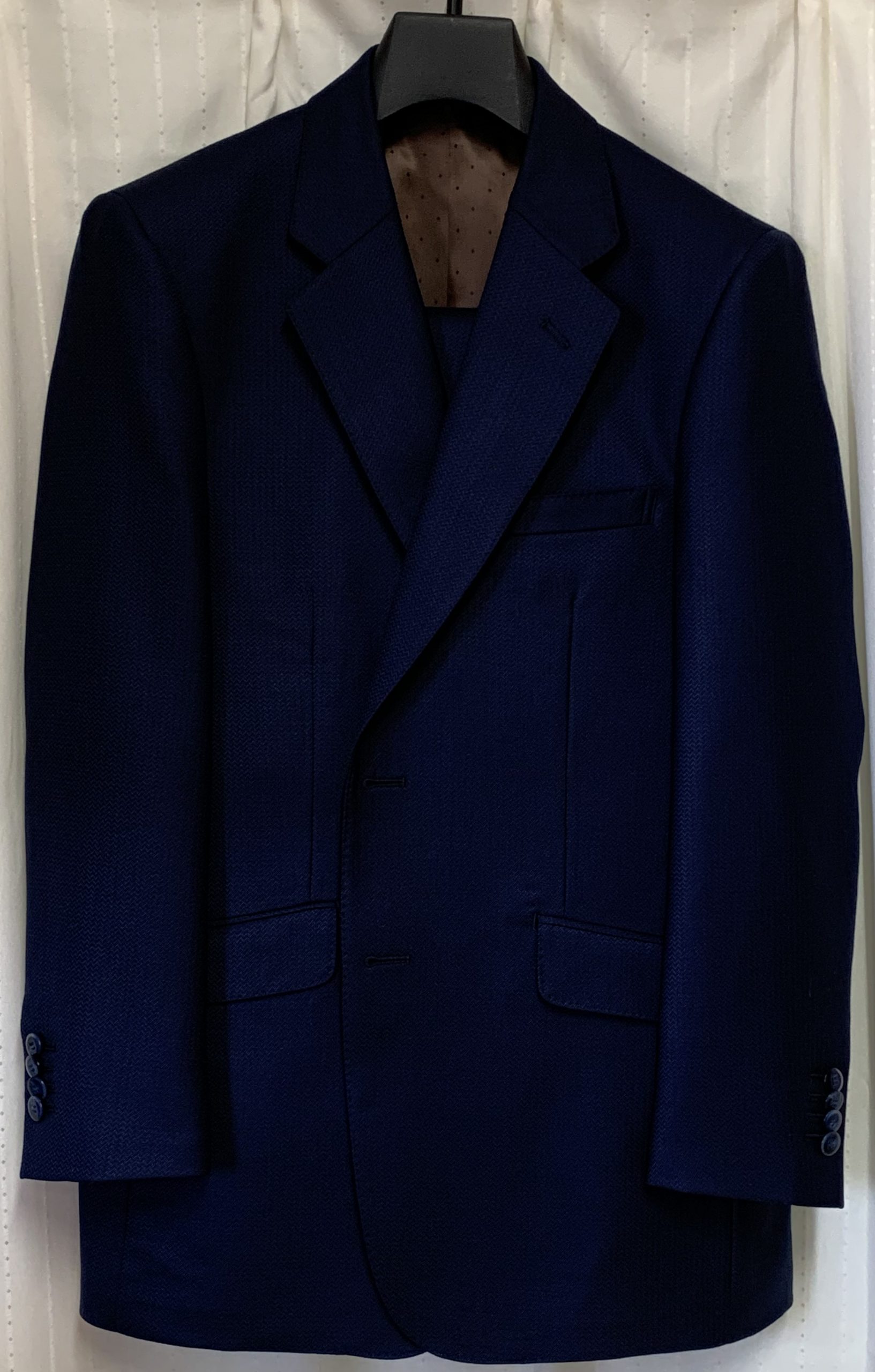 毎シーズンご利用のA社長様。1月の会社の新春大会にと新調していただきました。12着目はイギリス産ジョンフォスターのネイビー、ヘリンボーンのシャドーストライプが穏やかな光沢を表現し、また落ち着きと高い格調を醸し出しています。上衣を羽織ると「軽いね!」と着心地の良い感触です。いつもご利用ありがとうございます。