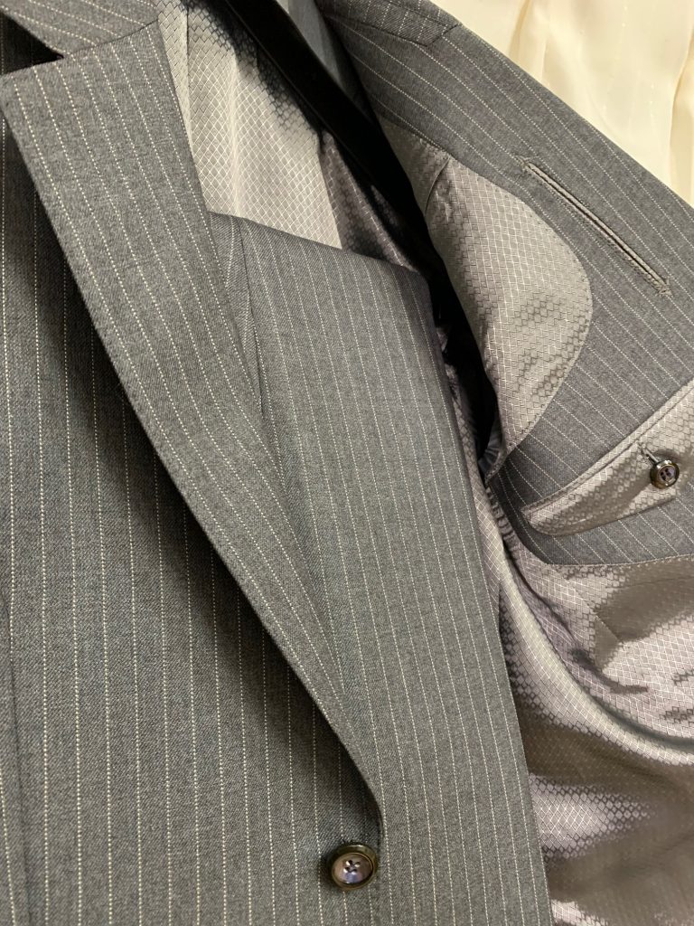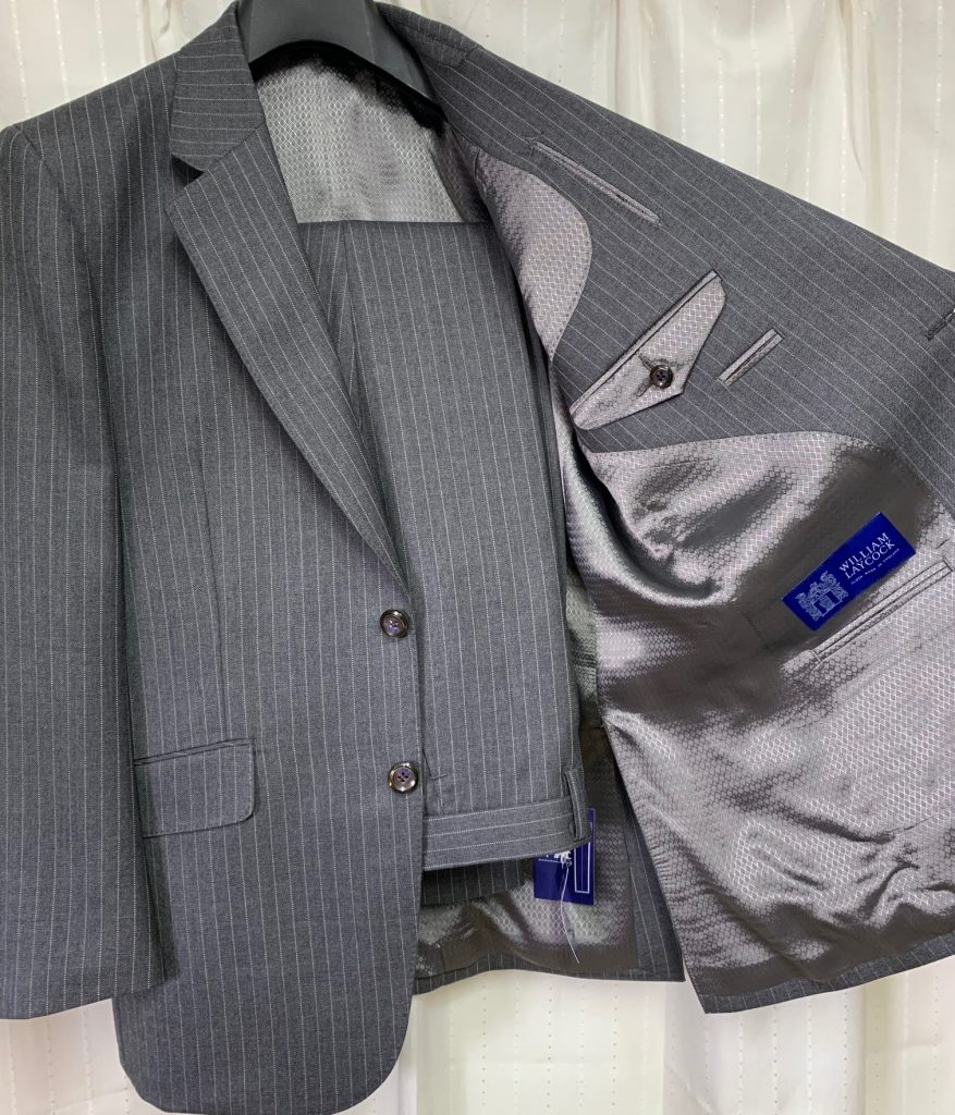 クラシック調であり、質実剛健といった佇まいを感じさせる英国生地。ブランドはウィリアム・ライコック。12着目に選ばれたE様は会社の立場もトップになられました。これまではネイビー系を主にスーツ・ジャケットを仕立ててこられましたが今回はグレーのストライプです。立場にふさわしいスーツに仕上がりました。